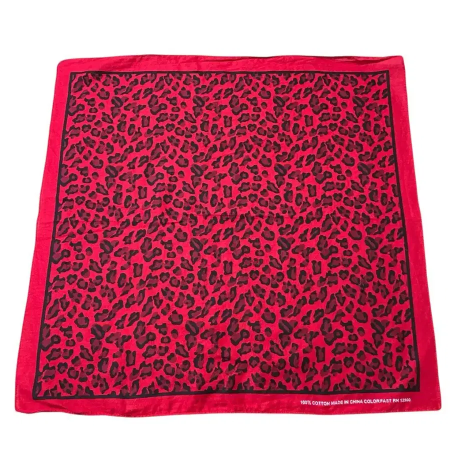 USA 구제 의류 반다나 레오파드 프린트 코튼 레드 빈티지 V4