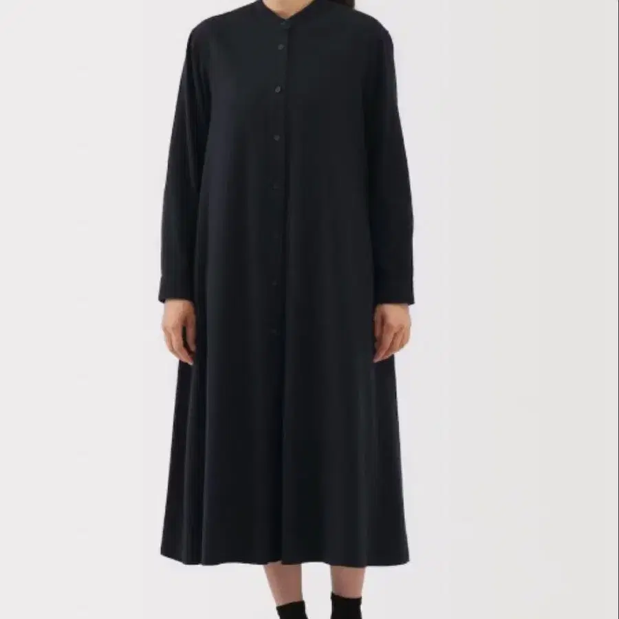 무인양품 양면 기모 플란넬 스탠드 카라 긴팔 원피스 다크 네이비 L