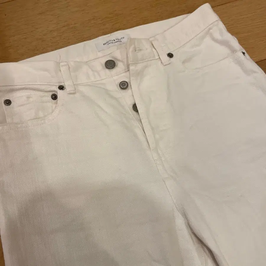 화이트 데님 팬츠 프린지 밑단 스트레이트