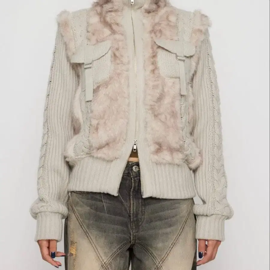 lagua gem CABLE KNIT FAUX FUR 블루종