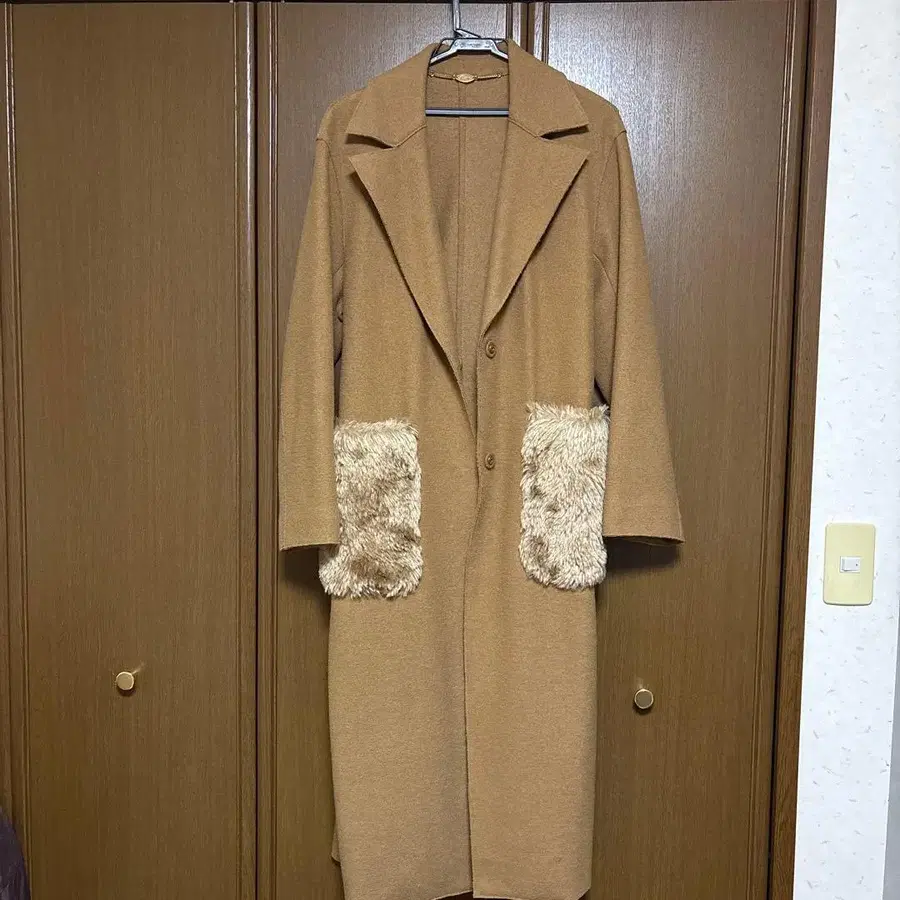 Kaon 퍼 달린 포켓 롱 코트 카멜