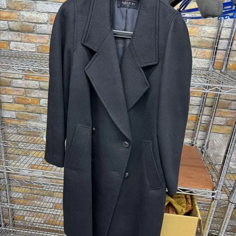 블랙 더블 브레스트 롱 코트 캐시미어 100% agodoro