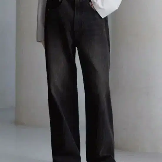 [ CLEL ] 리프 스트레이트 데님 팬츠 블랙 S