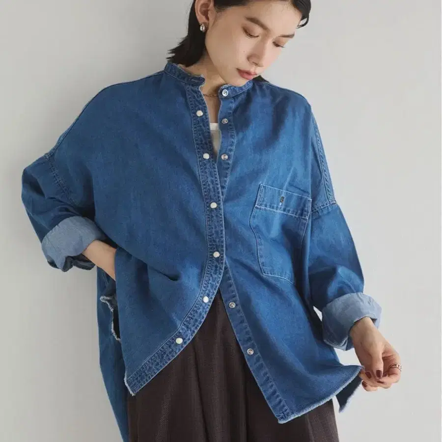 [ 미사용 새상품 ] 라이트 온스 데님 밴드 카라 오버 사이즈 셔츠