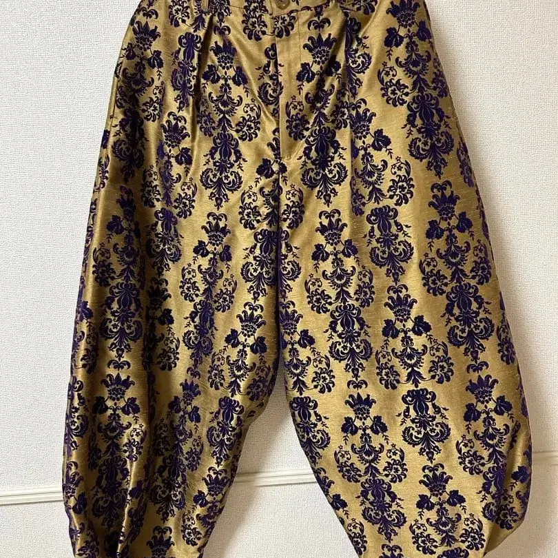 골드 컬러 보라색 꽃무늬 사루엘 팬츠 ellcy