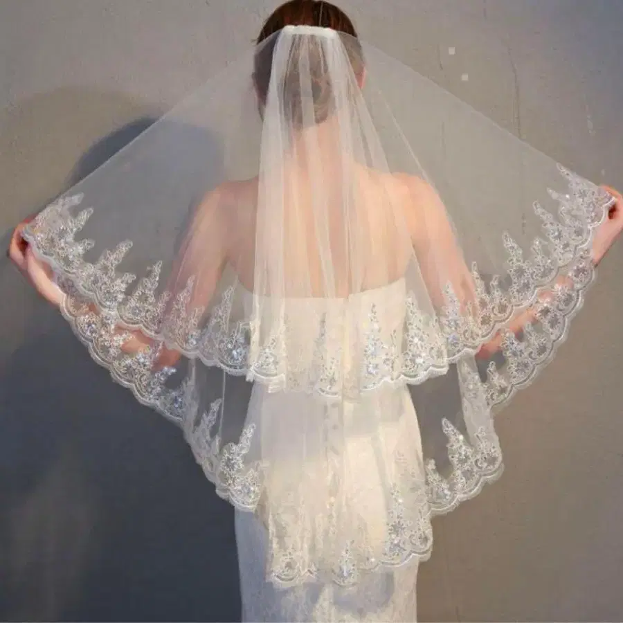 롱 웨딩 베일 레이스 비즈 장식