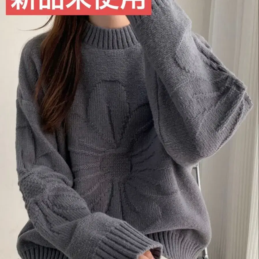 ABITOKYO 플라워 자카드 오버 사이즈 니트 풀오버