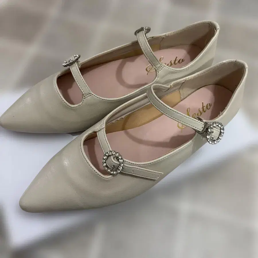 비쥬 포함 베이지 스틸레토 플랫슈즈