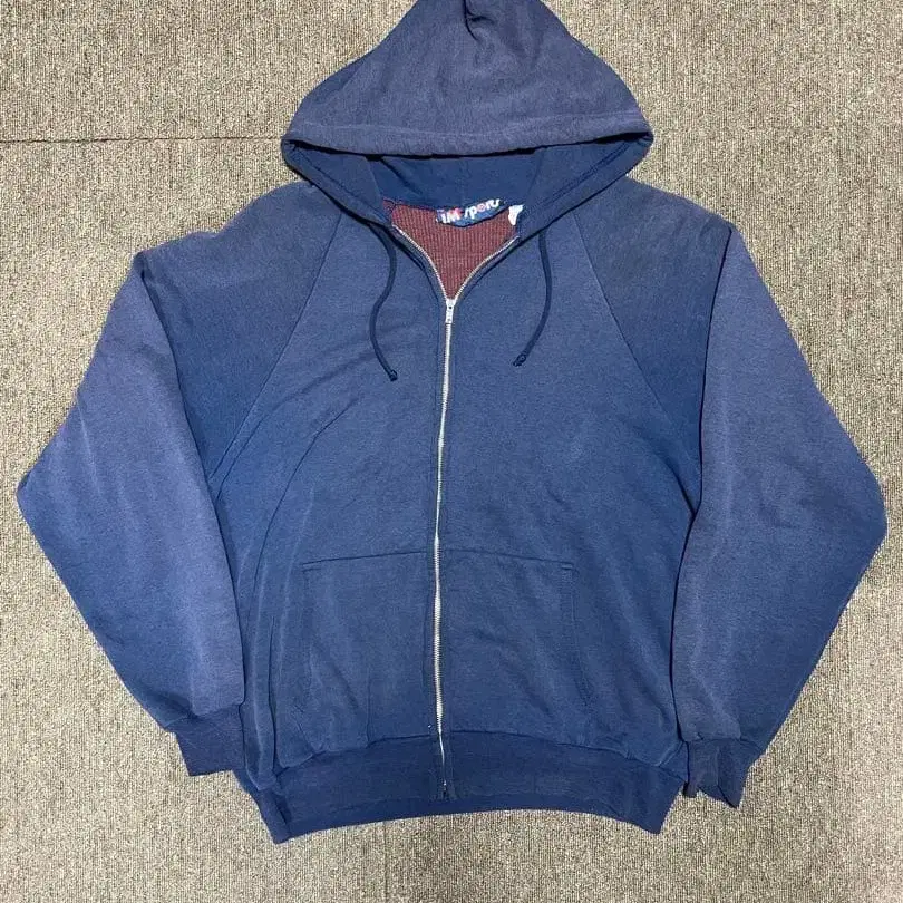 80s~90s 안감 기모 ZIP 후드티 네이비 페이드 크림슨 XL