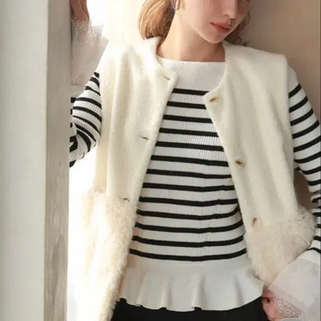 DONOBAN 2026 신상 happy bag 퍼 포함 화이트 베스트