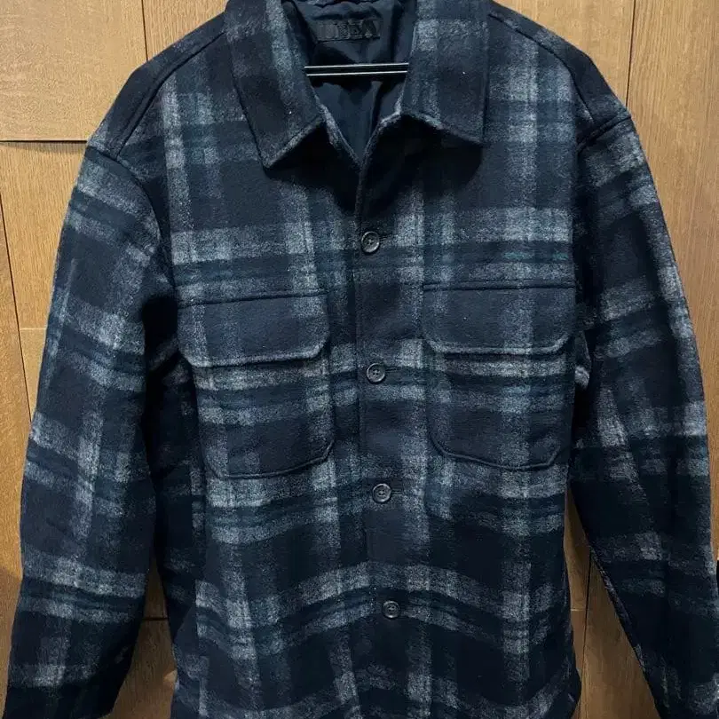 네이비 그레이 체크 무늬 플란넬 셔츠