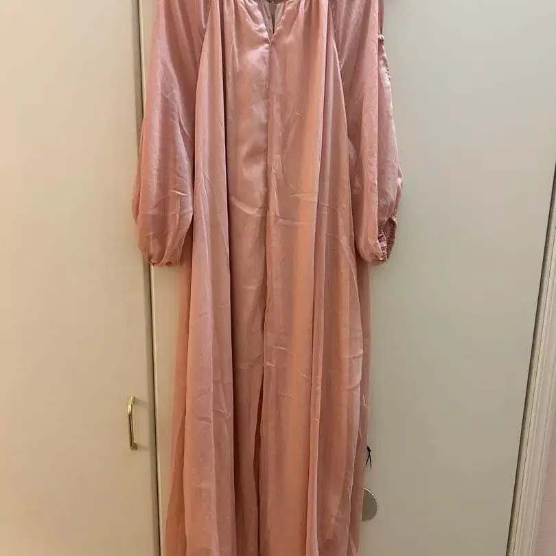 오프숄더 핑크 롱 원피스