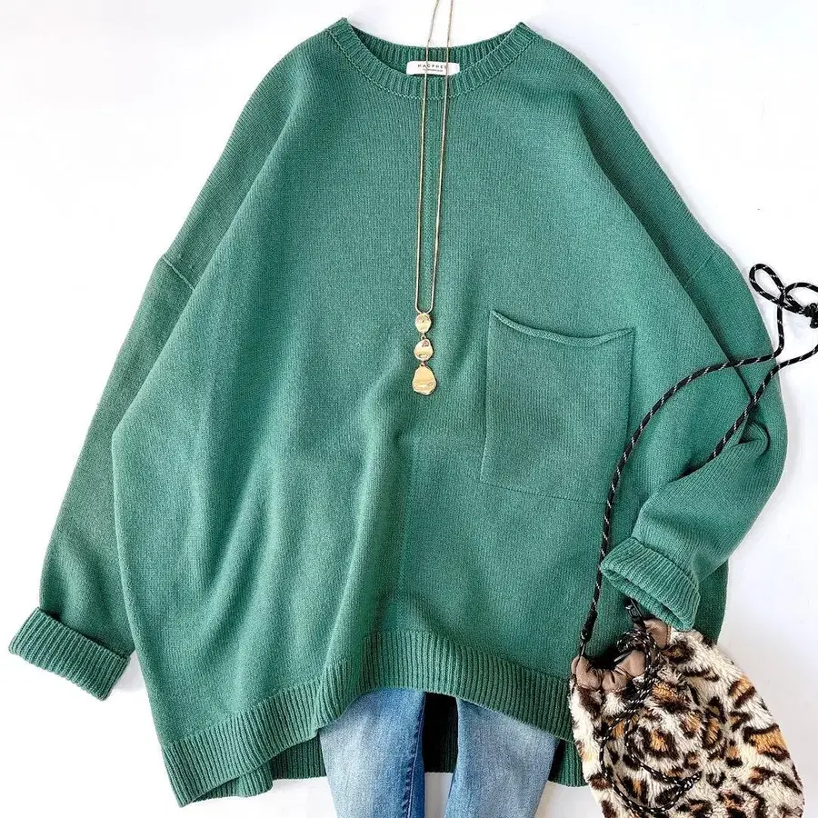 • 최종 가격 인하 울 혼방 그린 계열 크루넥 스웨터