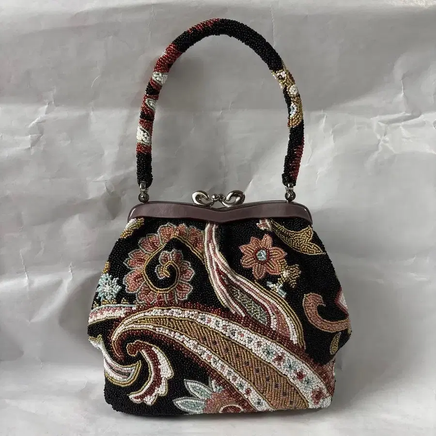 꽃무늬 비즈 자수 백 미사용급 가마구치 타입