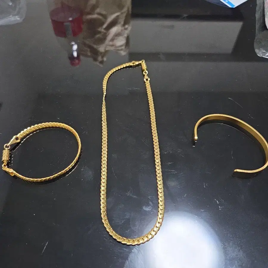 골드 컬러 팔찌, 목걸이, 뱅글 세트