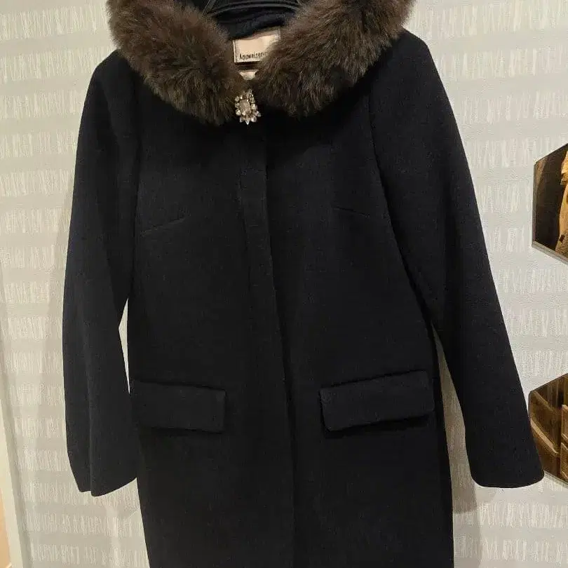 아푸와이저 리셰 네이비 롱 코트 퍼 포함