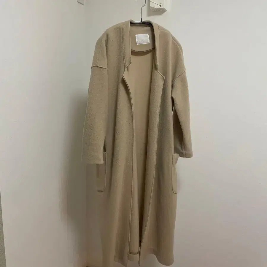 iki 울 혼방 체스터 코트 카멜 베이지 롱 코트 보아