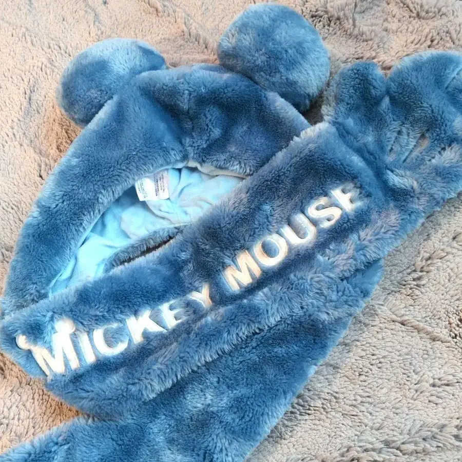 디즈니 미키마우스 귀 포함 머플러 블루 복슬복슬 방한 겨울 잡화