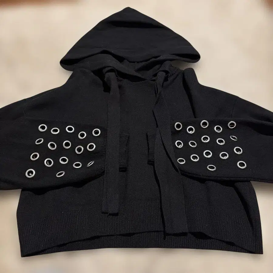 ZARA 블랙 후드 부착 니트 후드티 L 크롭 기장
