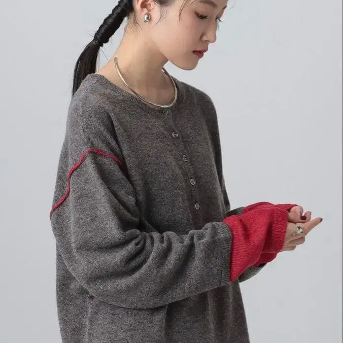 LEPSIM 12게이지 헨리 레이어 풀오버 차콜 x 레드