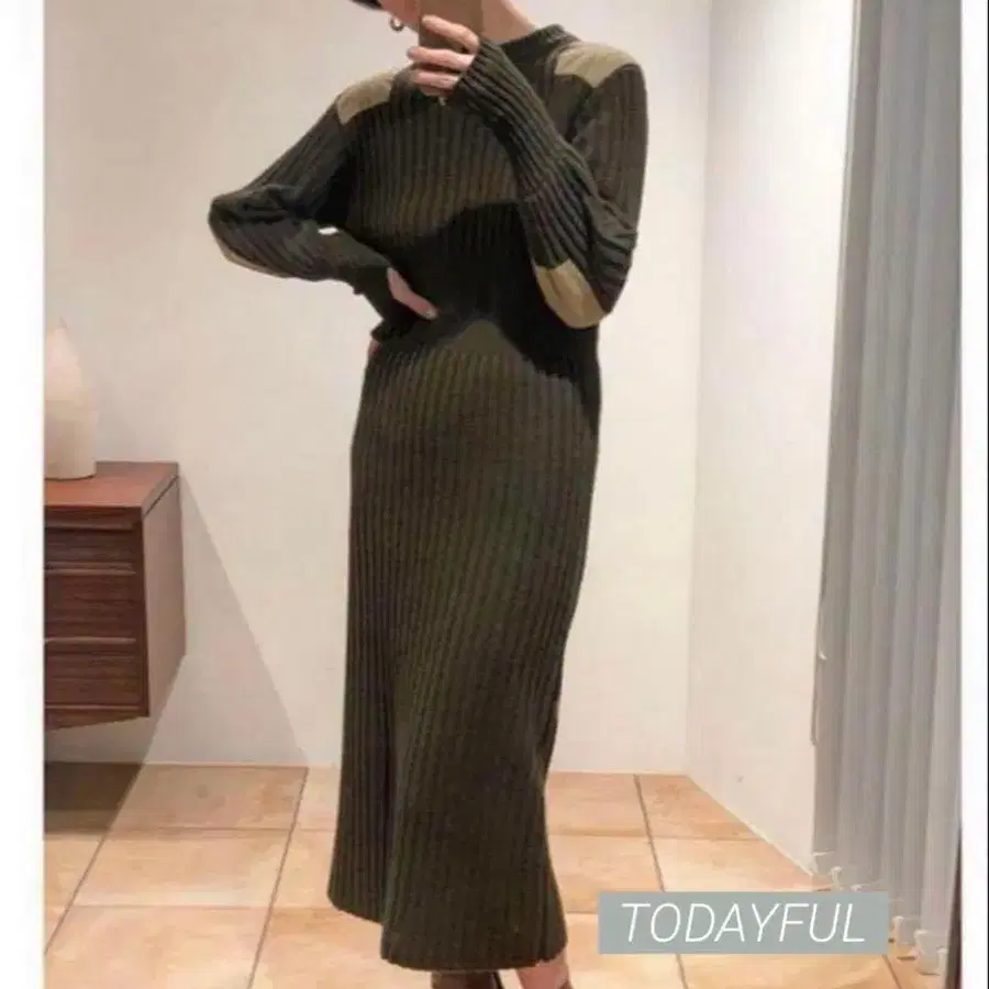 [ 새상품급 ] todayful 니트 원피스 카키 38