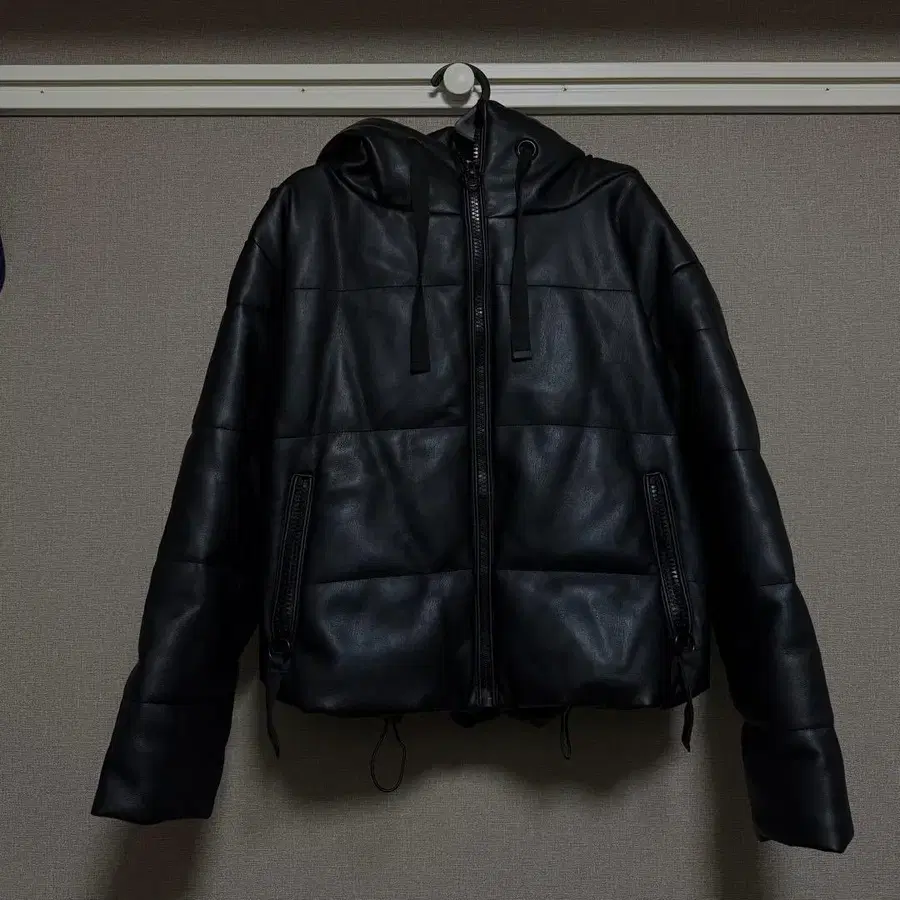 ZARA 인조 가죽 후드 부착 자켓