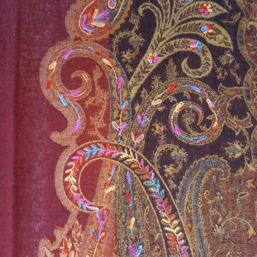 크고 작은 페이즐리 패턴에 자수를 더한 화려한 스톨입니다.