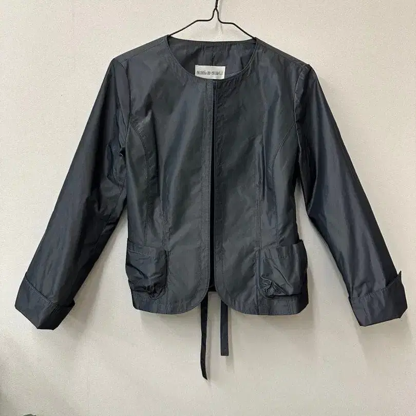 그레이 타프타 노카라 자켓