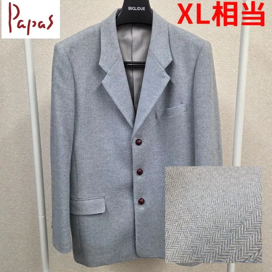 Papas 헤링본 자켓 천연 가죽 싸개 단추