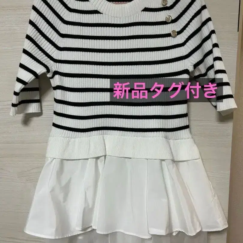 [ 택 포함 새상품 ] 스트라이프 니트탑 5부 소매 플레어