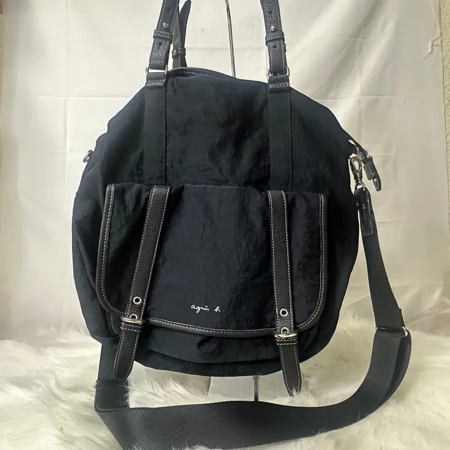 자동 번역되었어요. 원문보기나일론 소재의 블랙 숄더백, 프론트 포켓 부착 및 조정 가능한 스트랩.