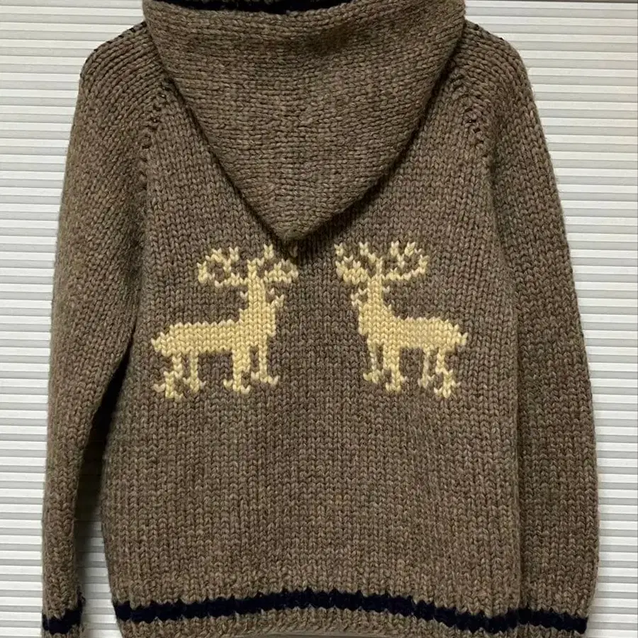 캐나디안 스웨터 카우친 루돌프 무늬 후디 니트 브라운 더블 지퍼