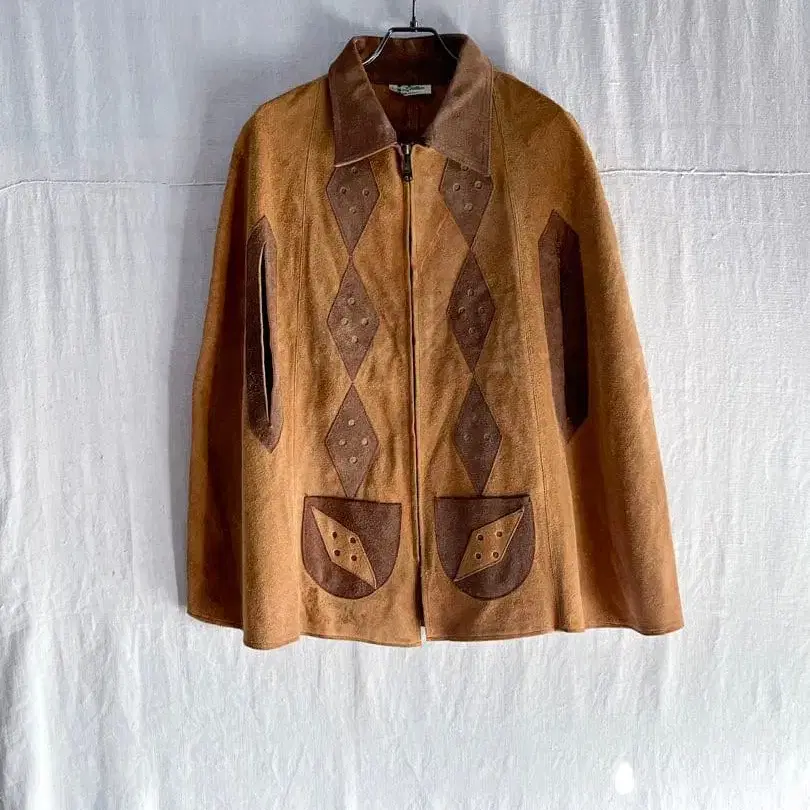 70s 스웨이드 가죽 케이프 자켓