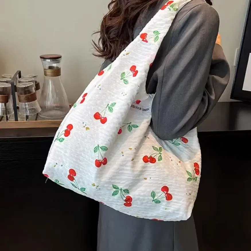 체리 패턴 에코백 35cm