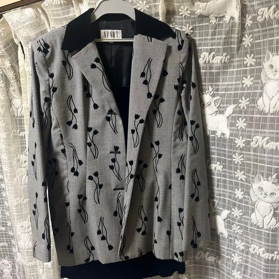 APART 꽃무늬 자켓과 블랙 스커트 세트
