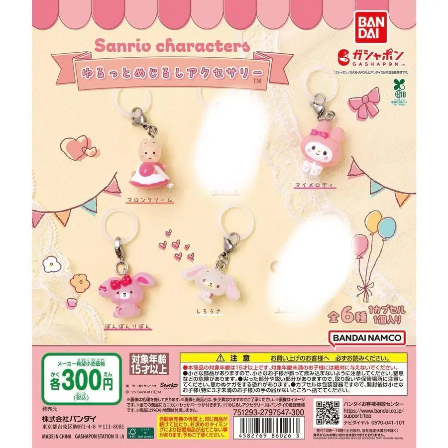 산리오 캐릭터즈 윳토메지루시 액세서리 4점 세트