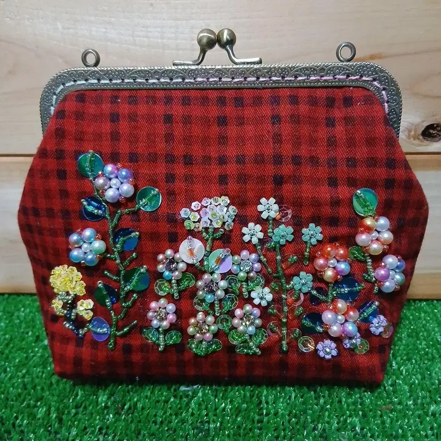 가마구치 파우치 핸드메이드 꽃 비즈 자수