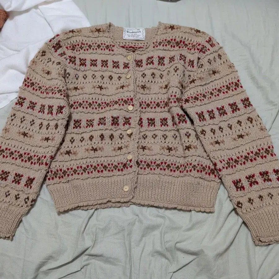 Riodecent 손뜨개질 입체편직 꽃 모티브 가디건