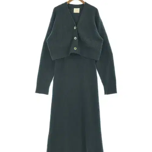 [ 실측치수(cm) ] 가디건 가슴 너비: 53.5cm, 가디건 어깨 너비: 47cm, 가디건 소매 길이: 66.5cm, 가디건 어깨로부터 총길이: 48cm, 원피스 가슴 너비: 39cm, 원피스 어깨로부터 총길이: 127cm