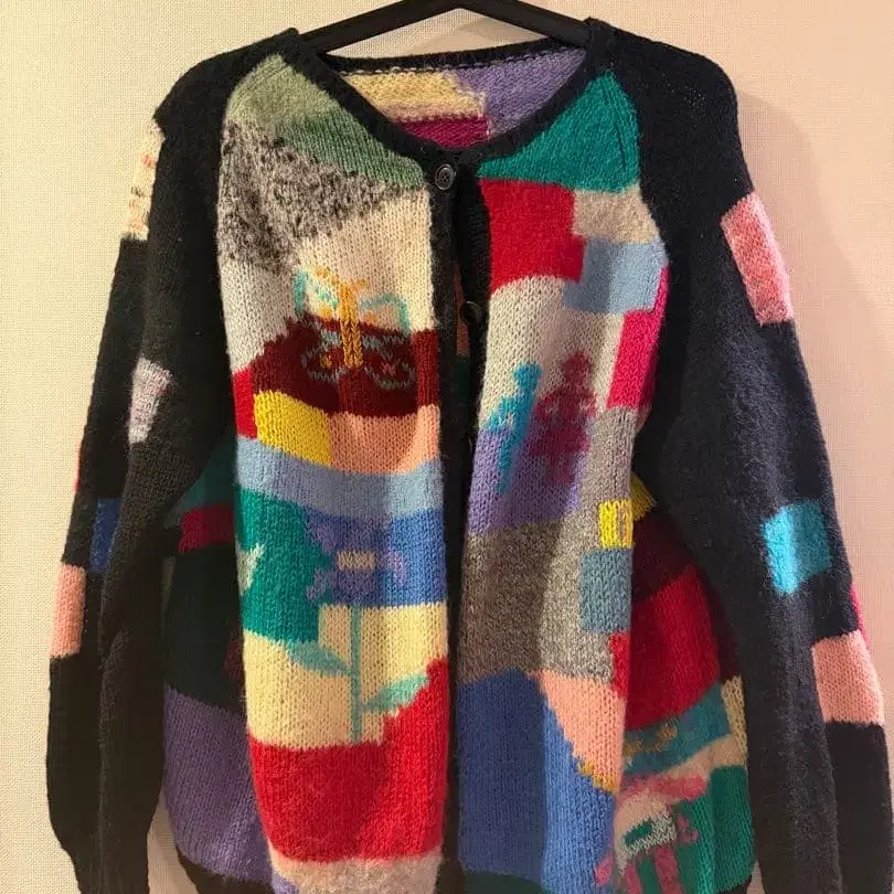 미국 빈티지 핸드메이드 컬러풀 패치워크 패턴 니트 가디건