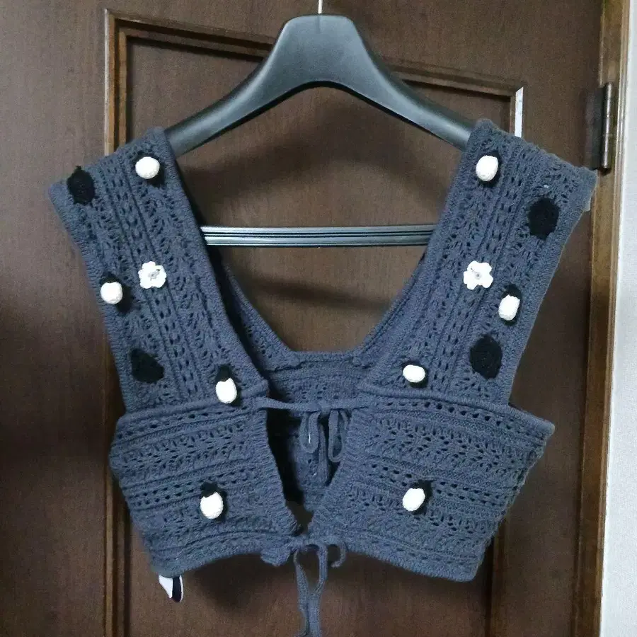 이페 그레이 꽃 모티브 크로셰 니트 베스트