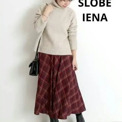슬로브 이에나 체크 플레어 스커트 레드 브라운 새상품급