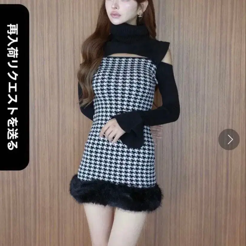 Randy 2way 하운드 투스 퍼 미니 원피스