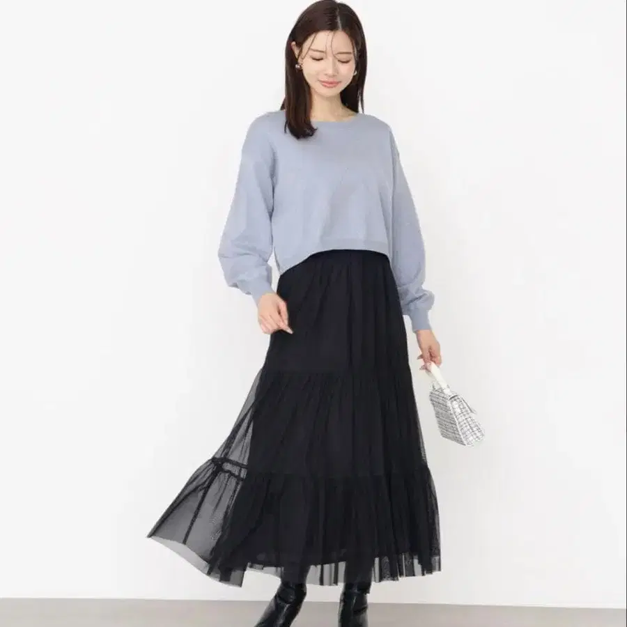 새상품 현행 프로포션 바디 드레싱 튤 플레어 롱 스커트 블랙 M