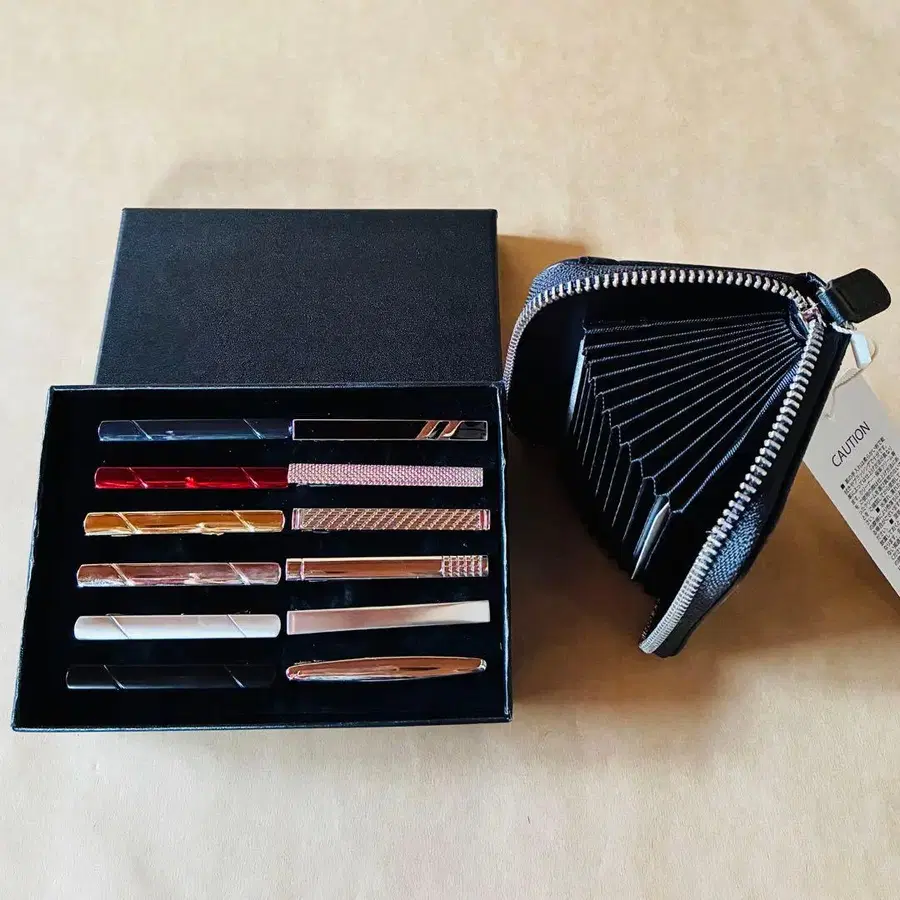 [현품 한정 대특가] 넥타이핀 12세트 천연 가죽 카드 케이스 명함지갑