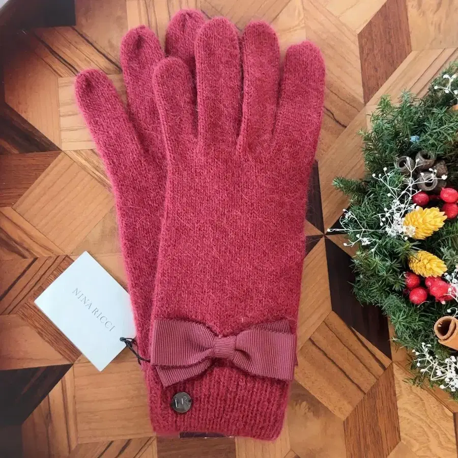 새상품 니나리치 리본 포함 울 장갑 와인 베리