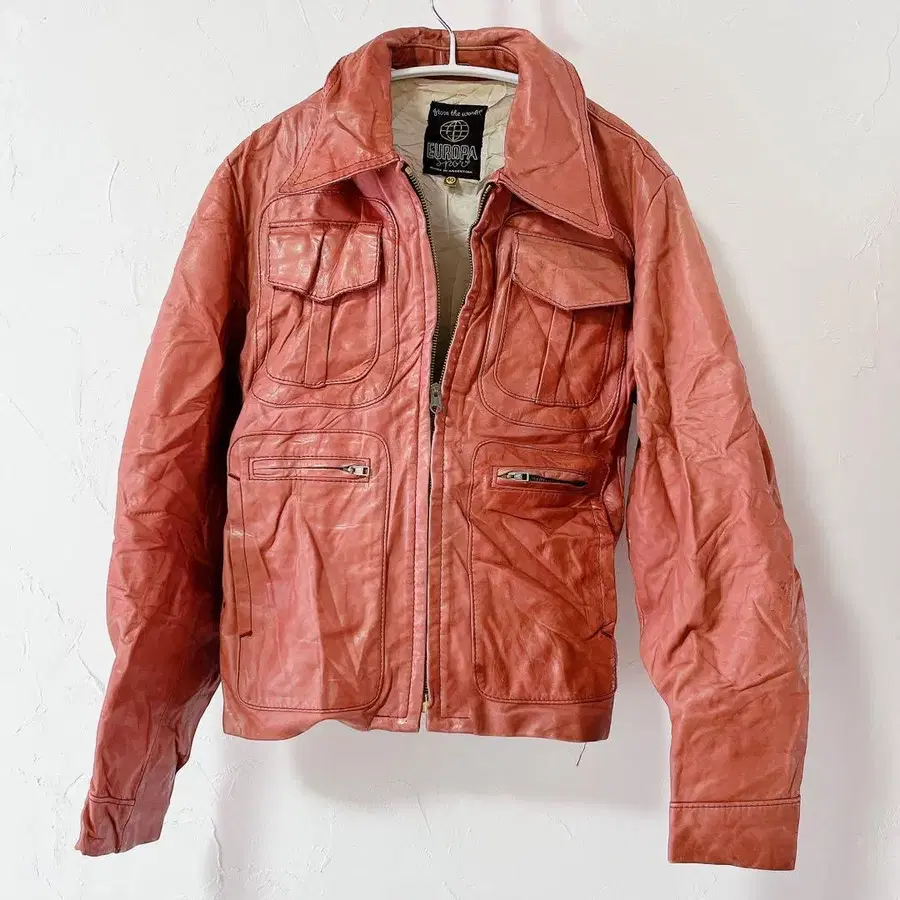 자동 번역되었어요. 원문보기가죽 소재의 빨간색 자켓, 지퍼와 포켓이 있어 스타일리시합니다.