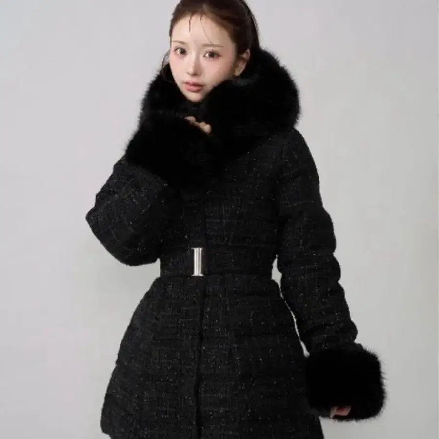 Darich 2025년 레이디 미디 트위드 다운 코트 블랙 S