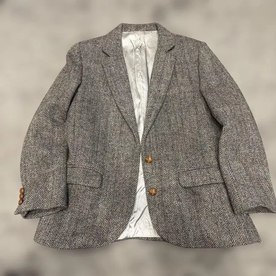 90s 해리스 트위드 헤링본 테일러드 자켓 그레이