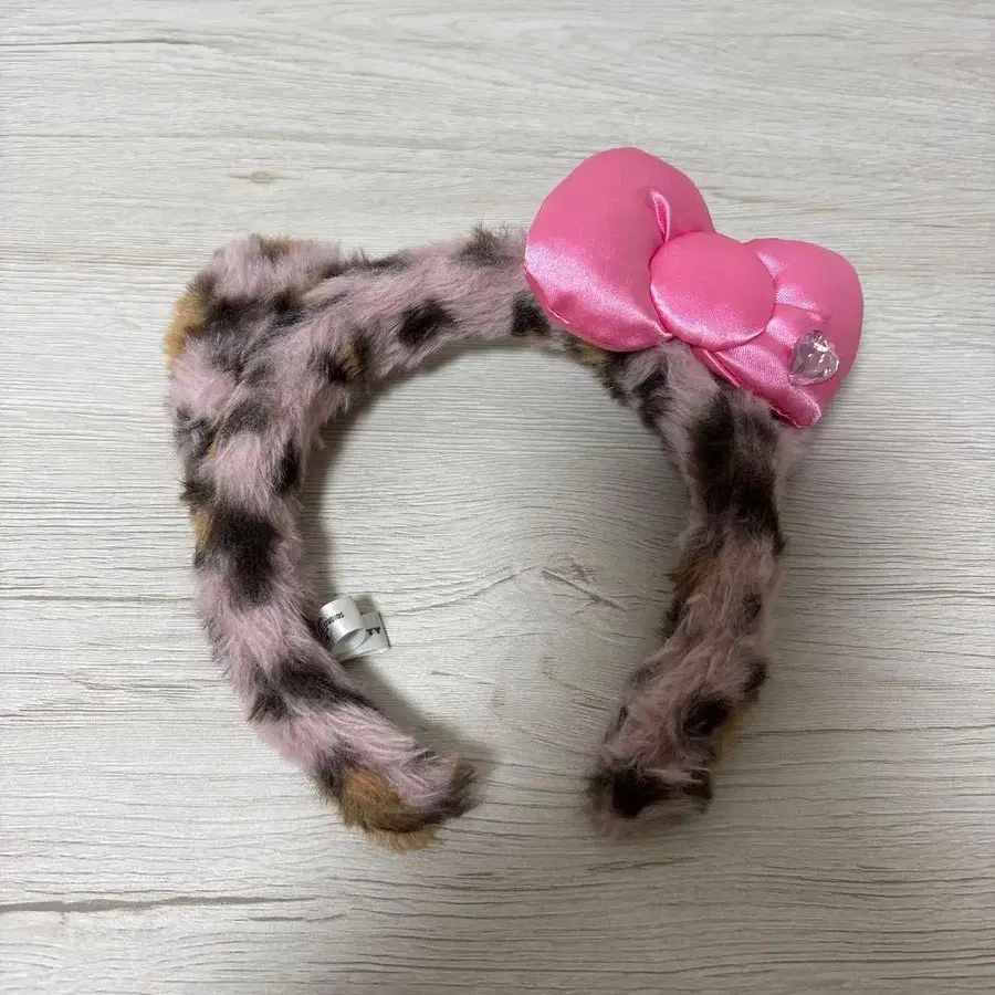 레오파드 무늬 퍼와 핑크 리본 머리띠
